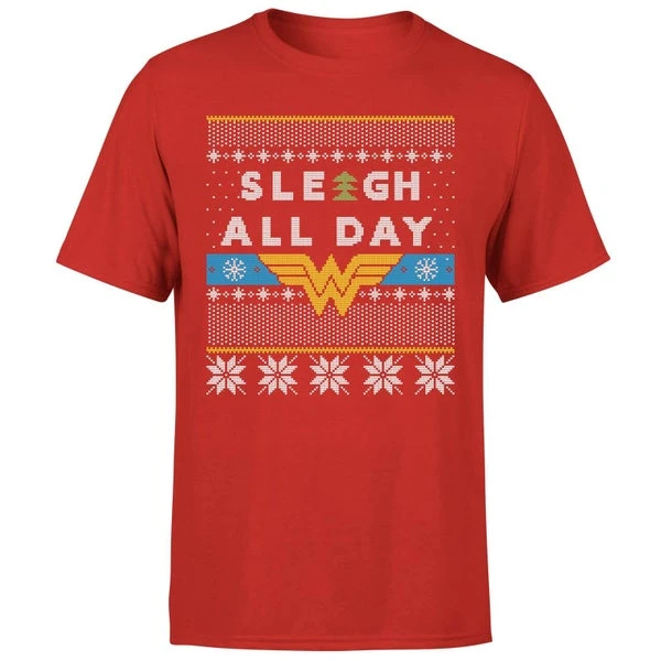Our Wonder Woman ‘Sleigh All Day Men’s Christmas T-Shirt, a must-have addition to any wardrobe, is exclusive to our site.